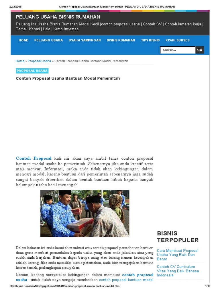 Contoh Proposal Usaha Bantuan Modal Pemerintah PELUANG USAHA BISNIS RUMAHAN
