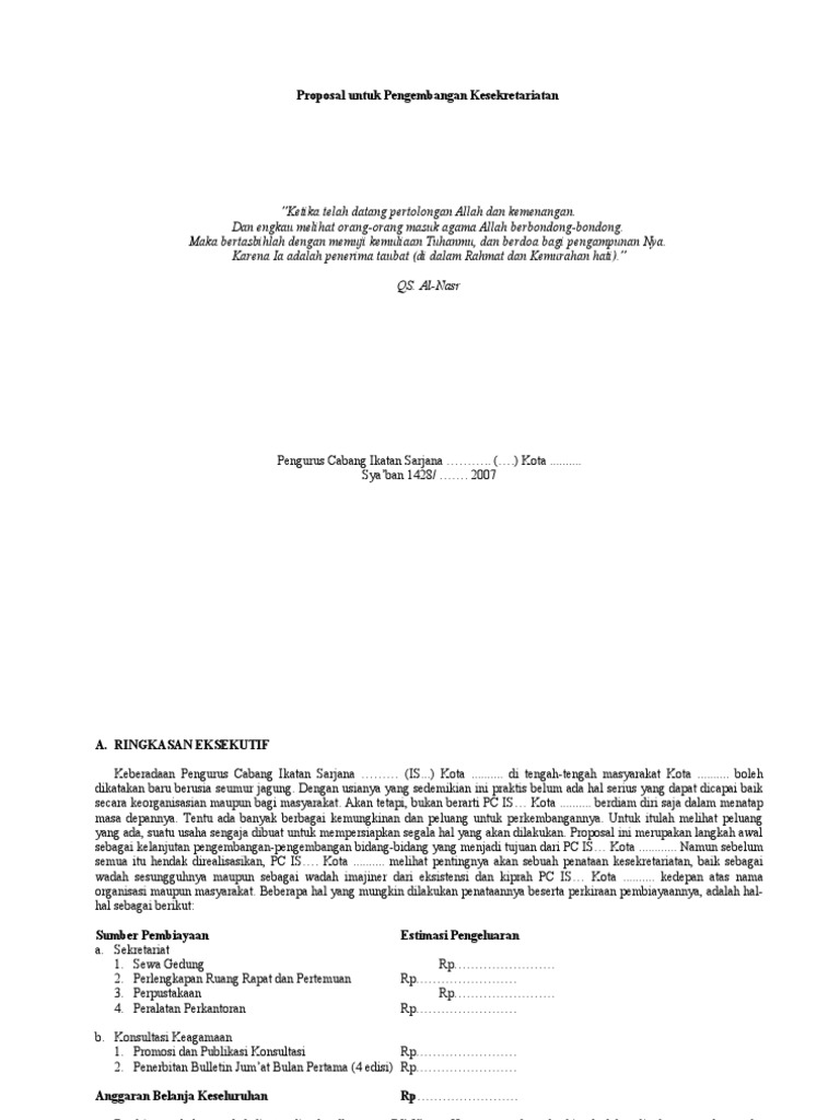 PDF) PROPOSAL PENGADAAN SEKRETARIAT | Natsir Adam - Academia.edu