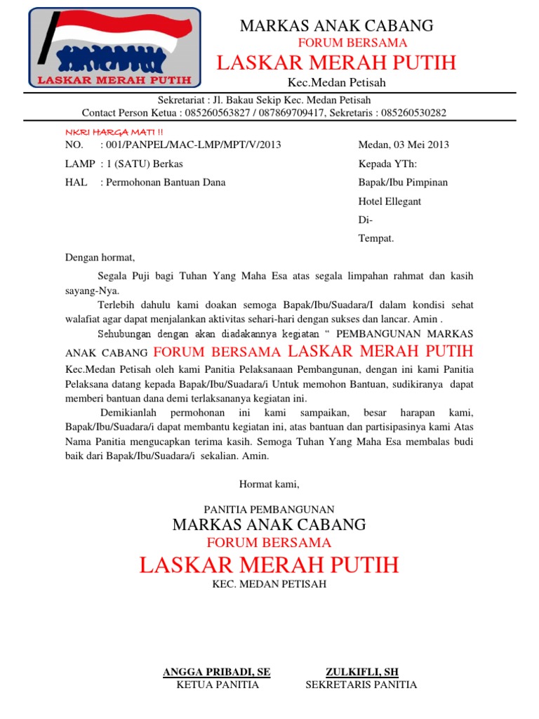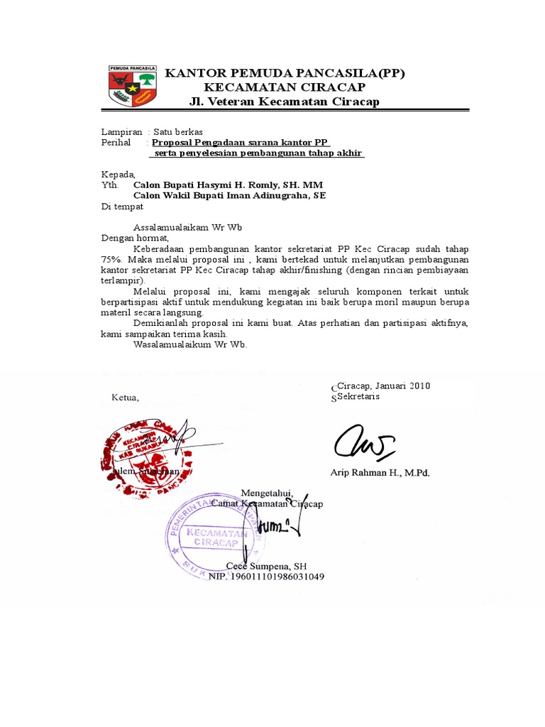 DOC) proposal permohonan kelengkapan sarana dan prasaran karang taruna Tunas Karya Bhakti rw 07 Ciputat | reza faneli - Academia.edu