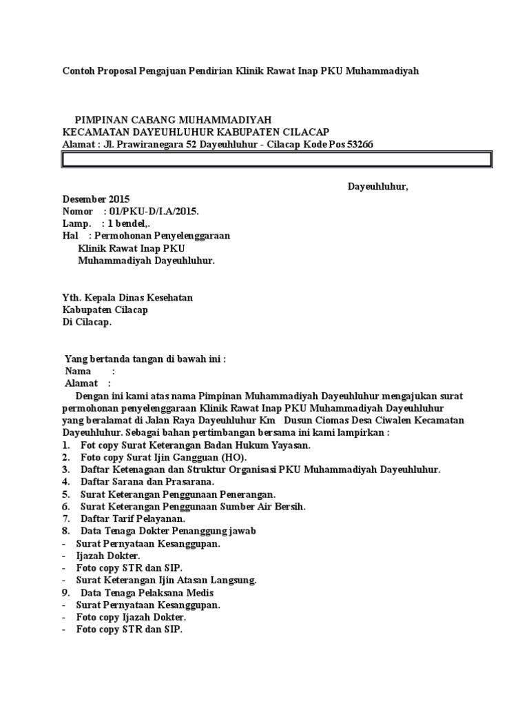 Contoh Proposal Pengajuan Pendirian Klinik Rawat Inap PKU Muhammadiyah