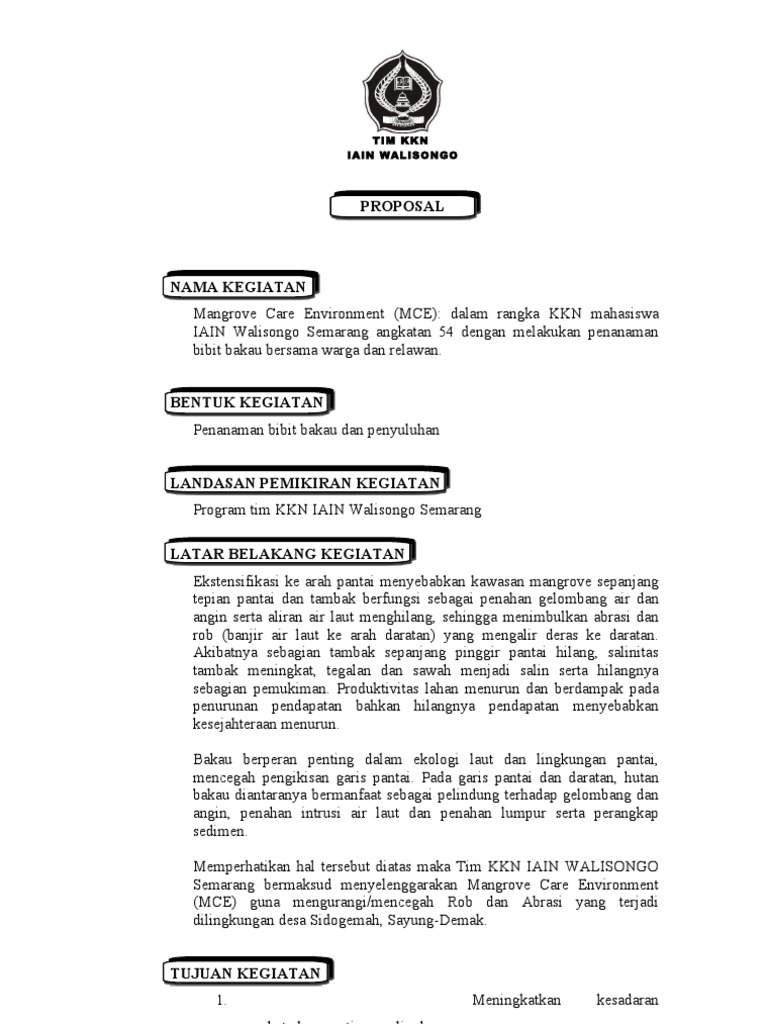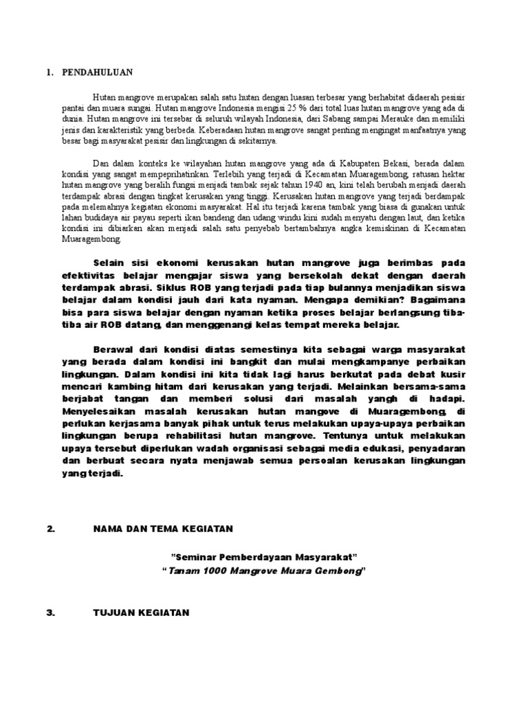 PROPOSAL PROGRAM KREATIVITAS MAHASISWA REMANG MANGUT (REBOISASI MANGROVE SEMARANG UTARA) BIDANG KEGIATAN : PKM PENGABDIAN KEPADA MASYARAKAT - PDF Free Download