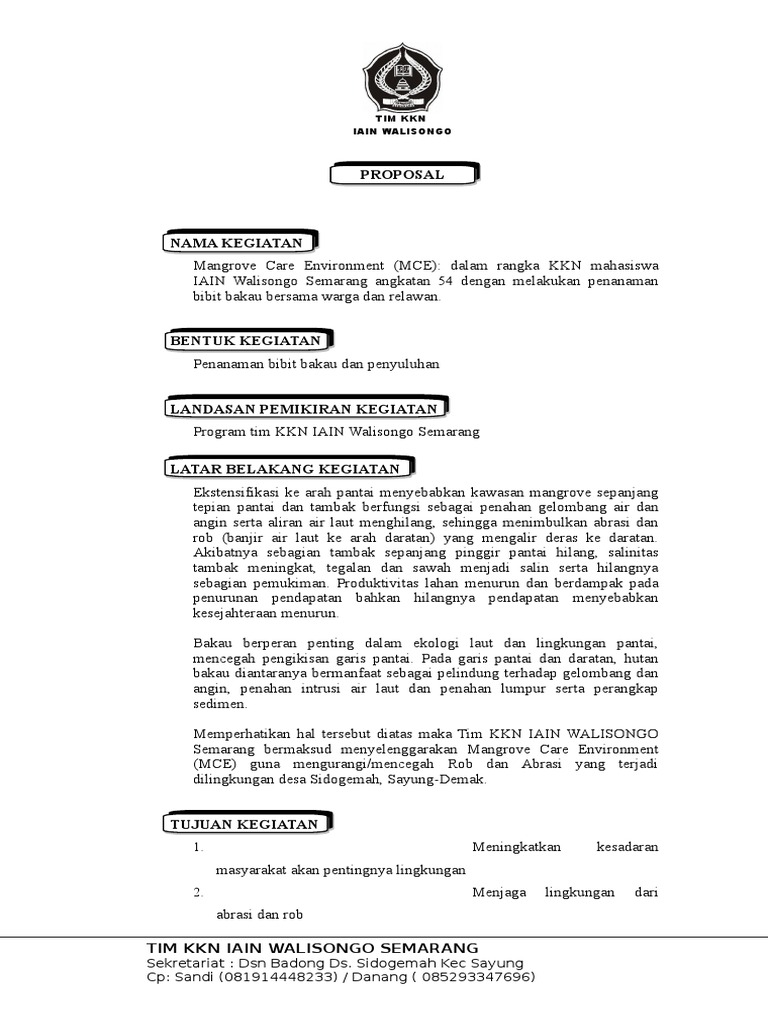 BINA LINGKUNGAN, SOSIAL DAN KEMASYARAKATAN (BIOTA): Contoh Proposal Kegiatan