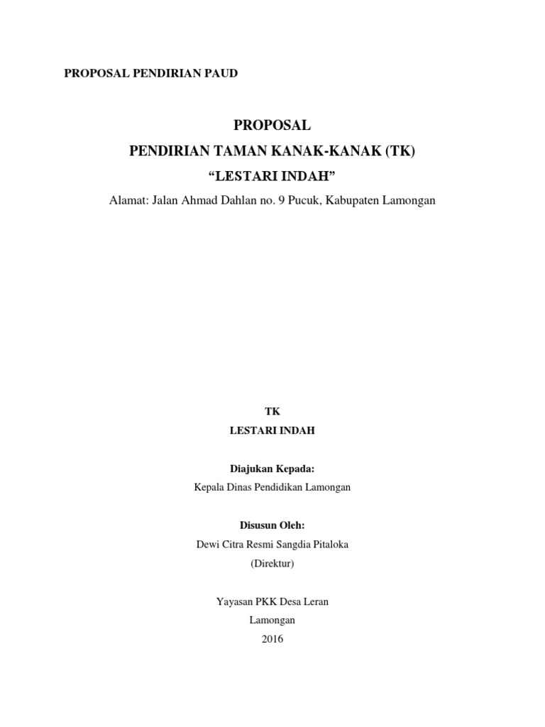 Contoh Proposal Pendirian Tk