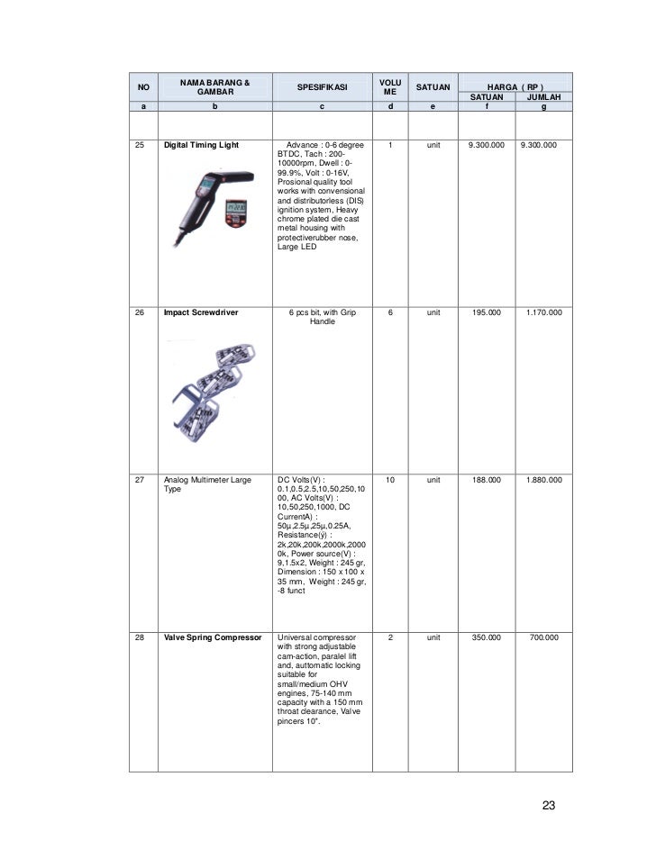 Proposal Pengadaan Alat Bengkel Teknik Sepeda Motor - Berbagai Alat