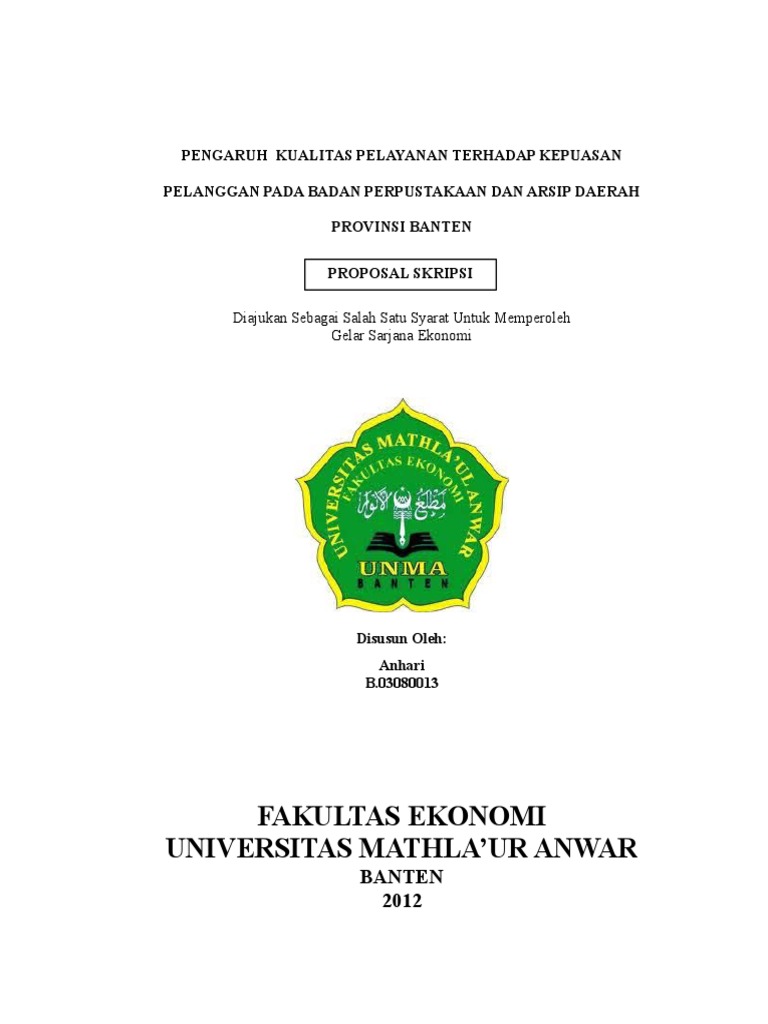 JUDUL SKRIPSI : PENGARUH KUALITAS PELAYANAN TERHADAP KEPUASAN PELANGGAN PADA PERPUSTAKAAN UMUM DAN ARSIP KOTA MALANG - SKRIPSI EKONOMI