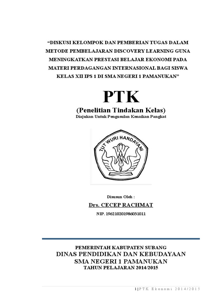 PTK EKONOMI KELAS 12 SMA - PENERAPAN MODEL PEMBELAJARAN DISCOVERY LEARNING DALAM MENINGKATKAN HASIL BELAJAR EKONOMI PESERTA