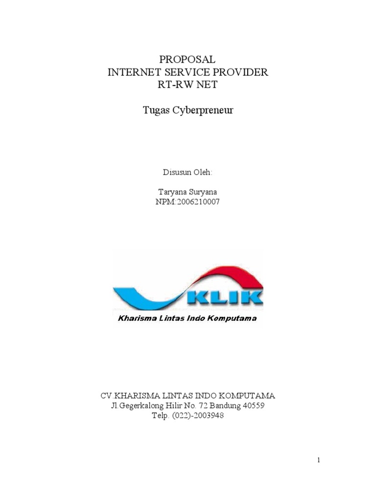 PROPOSAL INTERNET SERVICE PROVIDER RT-RW NET. Tugas Cyberpreneur - PDF Free Download