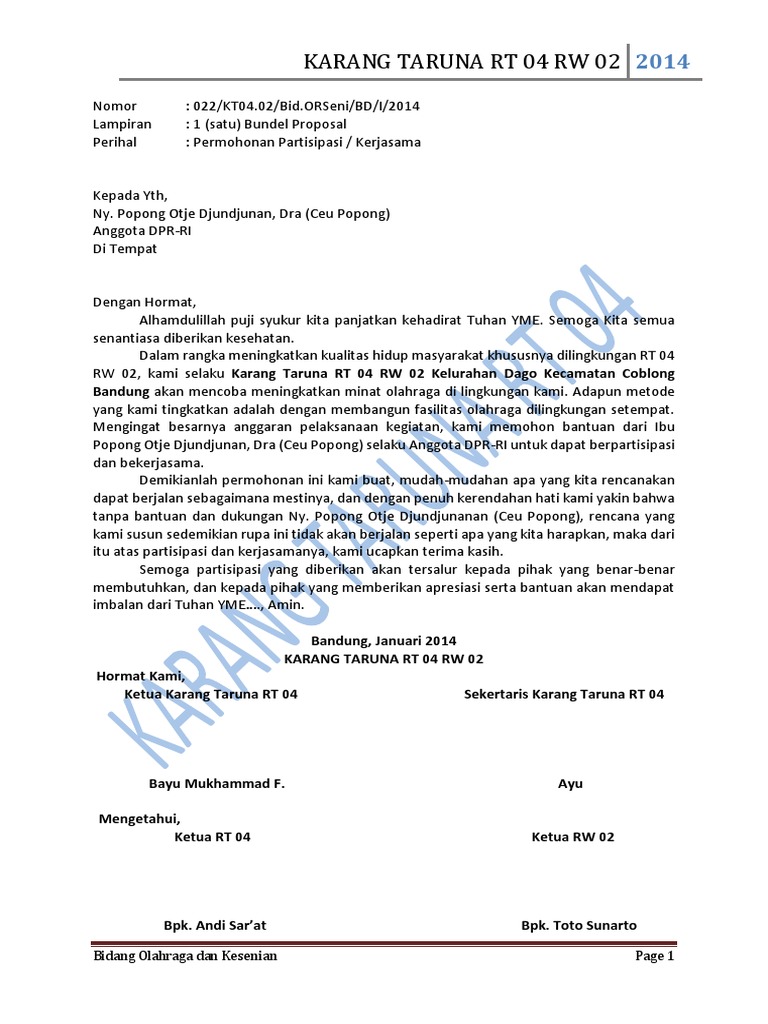 DOC) Proposal Permohonan Dana Karang Taruna | deri fathulhijri - Academia.edu