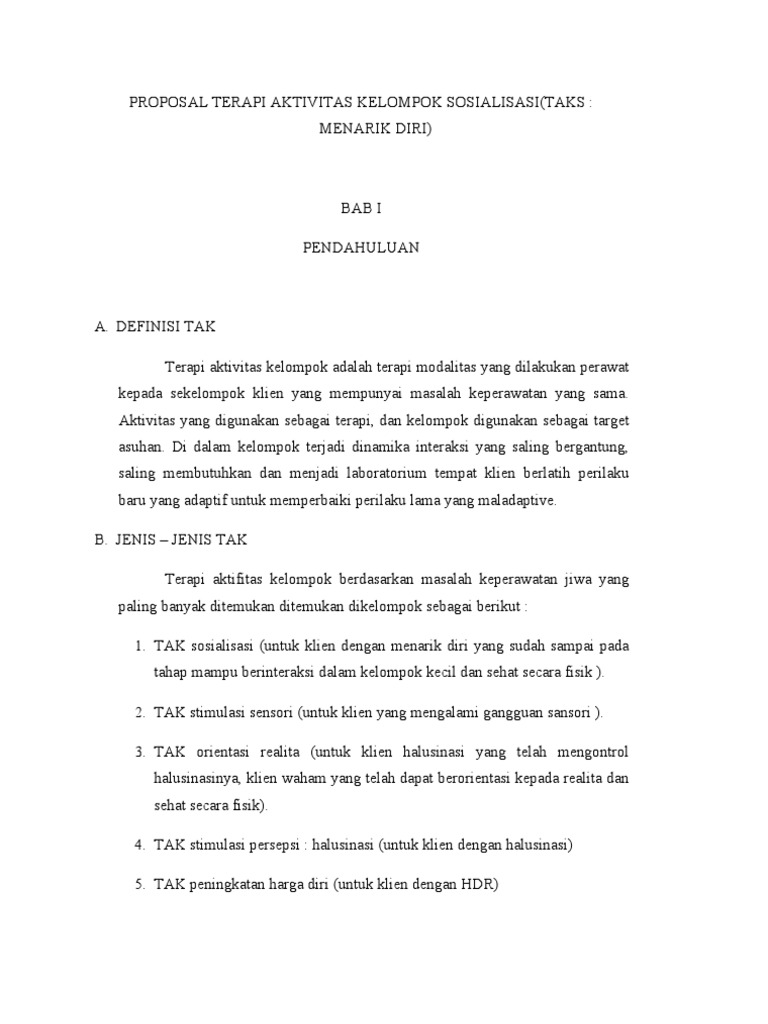 DOC) PROPOSAL TERAPI AKTIVITAS KELOMPOK SOSIALISASI | andri mahpudin - Academia.edu