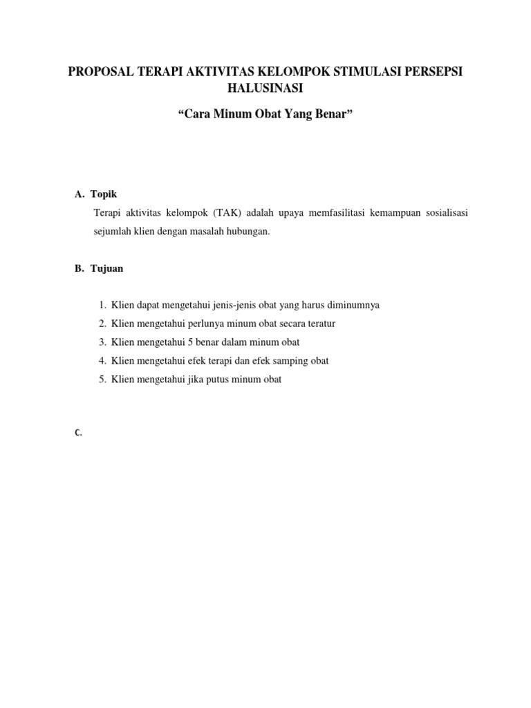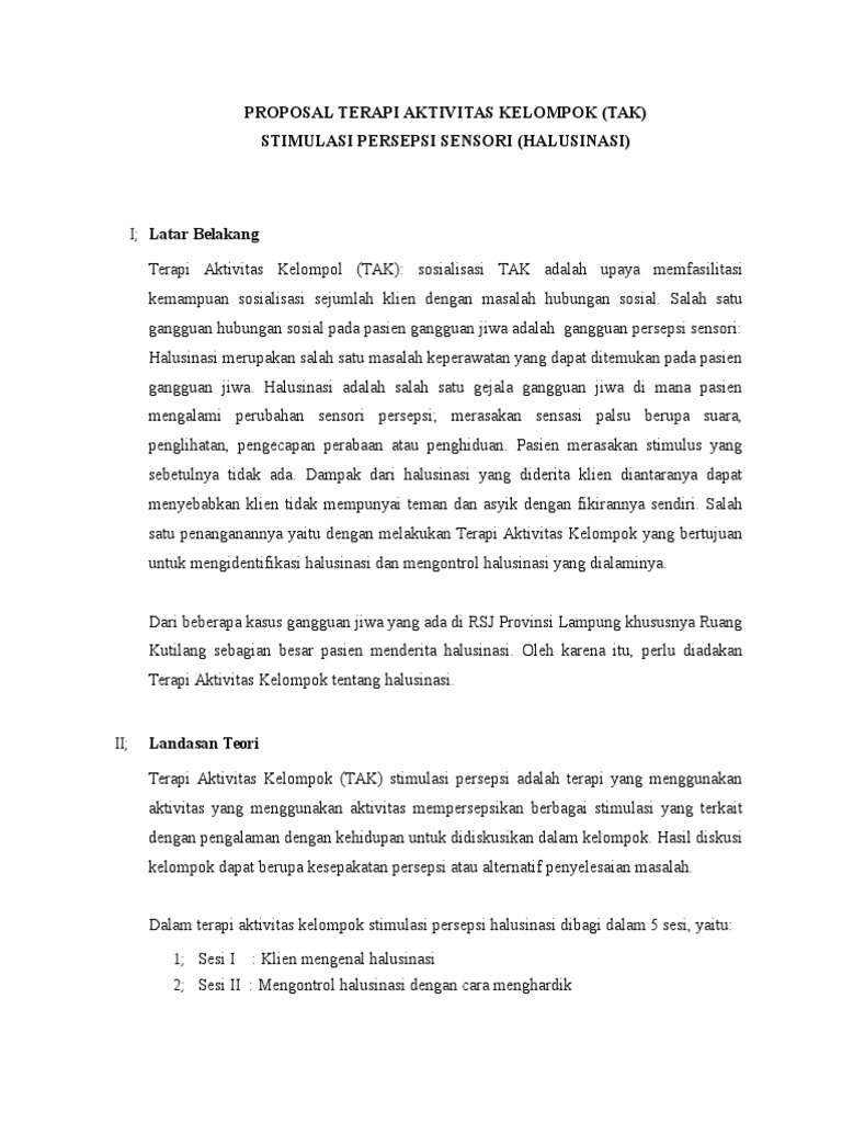 Contoh Proposal Terapi Aktivitas Kelompok Halusinasi - PDF Free Download