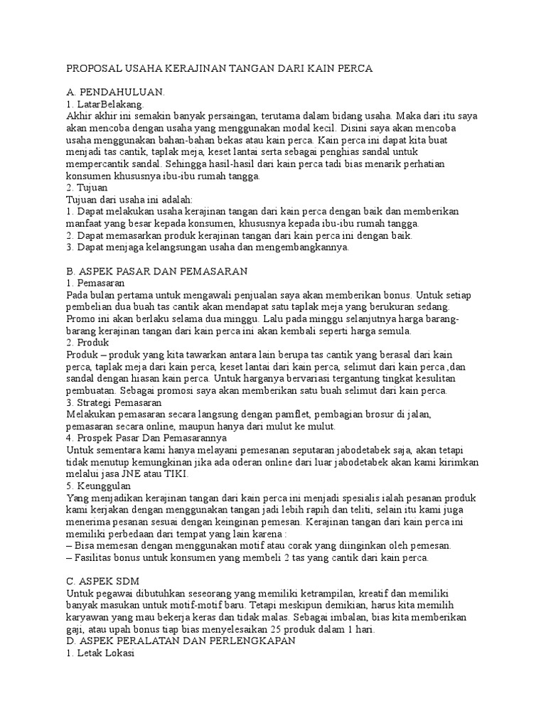 Contoh Proposal Usaha Kerajinan Kain Perca – cari