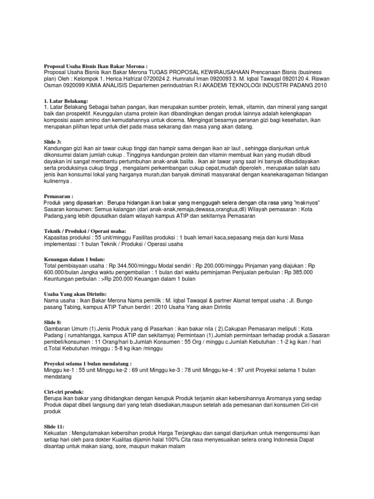 Contoh Proposal Usaha Ikan Bakar - Surat Ras