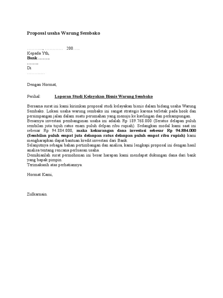 Contoh Proposal Permohonan Modal Usaha Kios Kelontong - Cute766