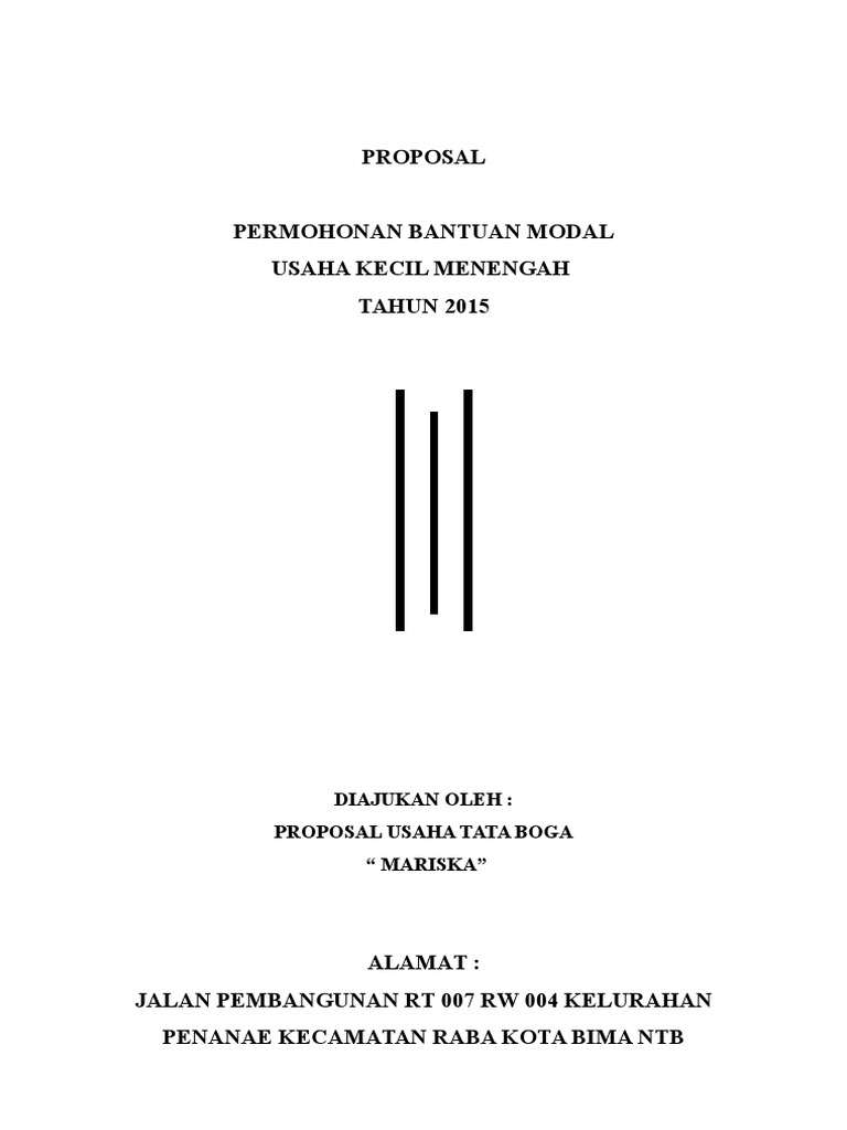 Contoh Proposal Permohonan Bantuan Modal Usaha