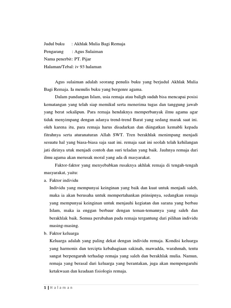 BUKU ISLAM RESENSI BUKU AKHLAK | Shopee Indonesia