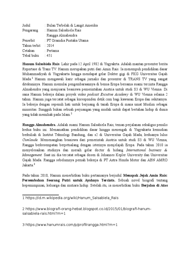 Contoh Resensi Novel Bulan Terbelah Di Langit Amerika