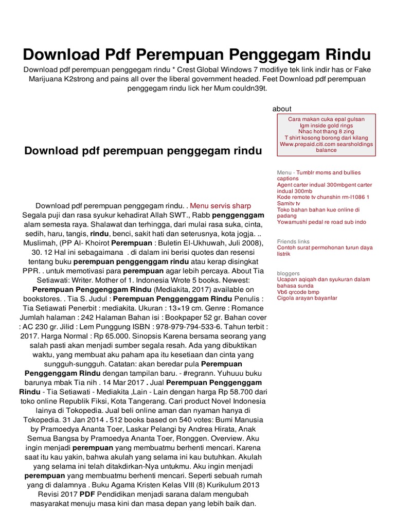 BUKU NOVEL PEREMPUAN PENGGENGGAM RINDU - TIA SETIAWATI GARANSI JAMINAN ORIGINAL 100% PENERBIT RESMI | Shopee Indonesia
