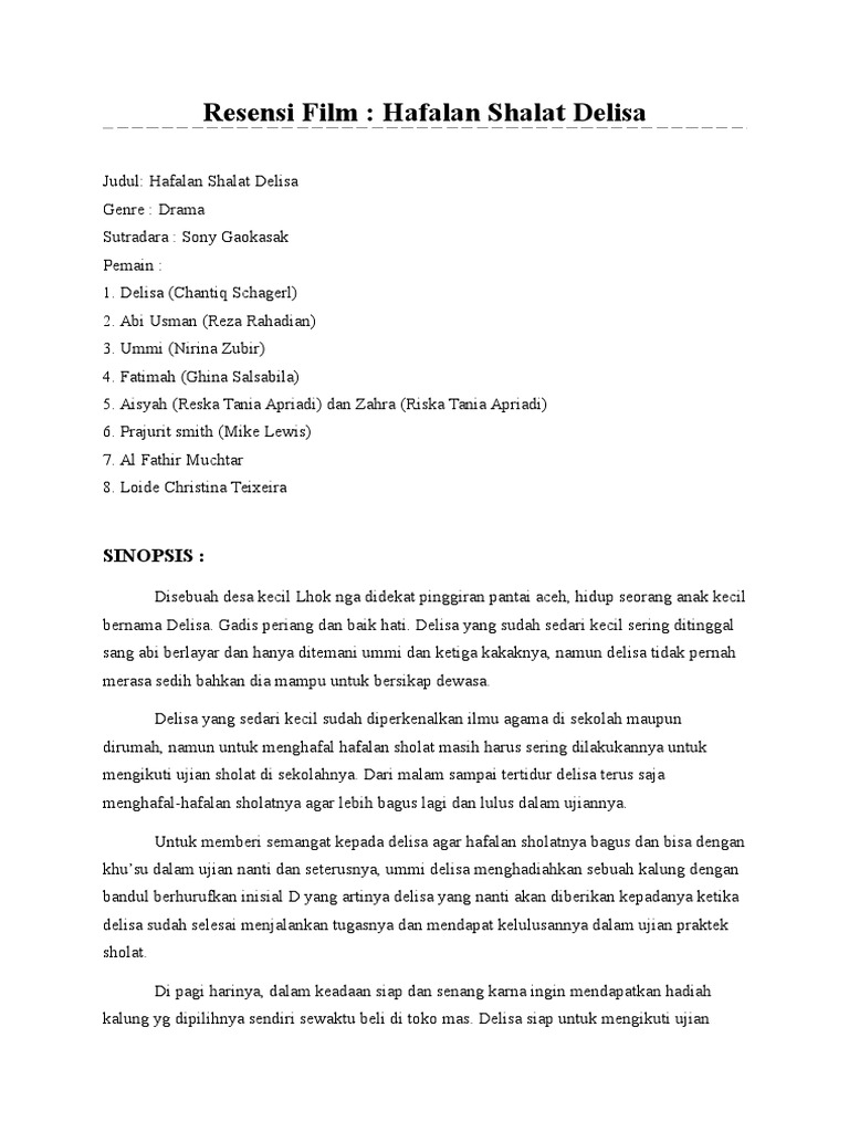 Resensi Film Hafalan Shalat Delisa
