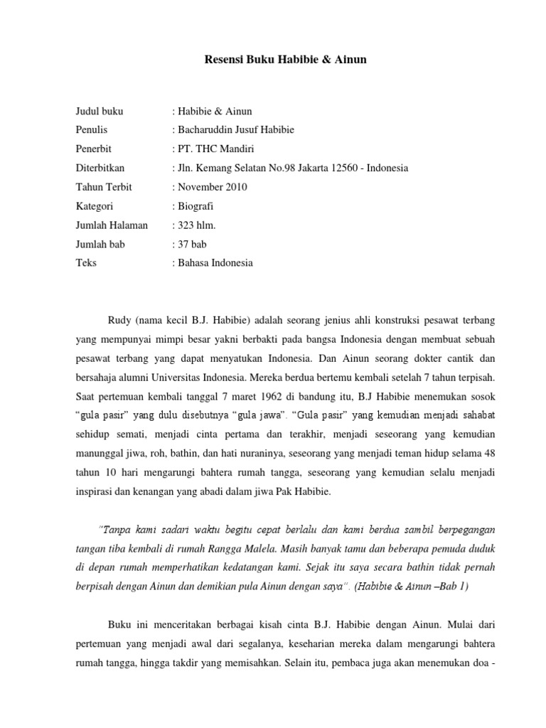 resensi buku non fiksi.rtf - Judul Buku Habibie Ainun Penulis Bacharuddin Jusuf Habibie Penerbit PT THC Mandiri Kategori Biograf Tahun 2010 Tebal xii | Course Hero