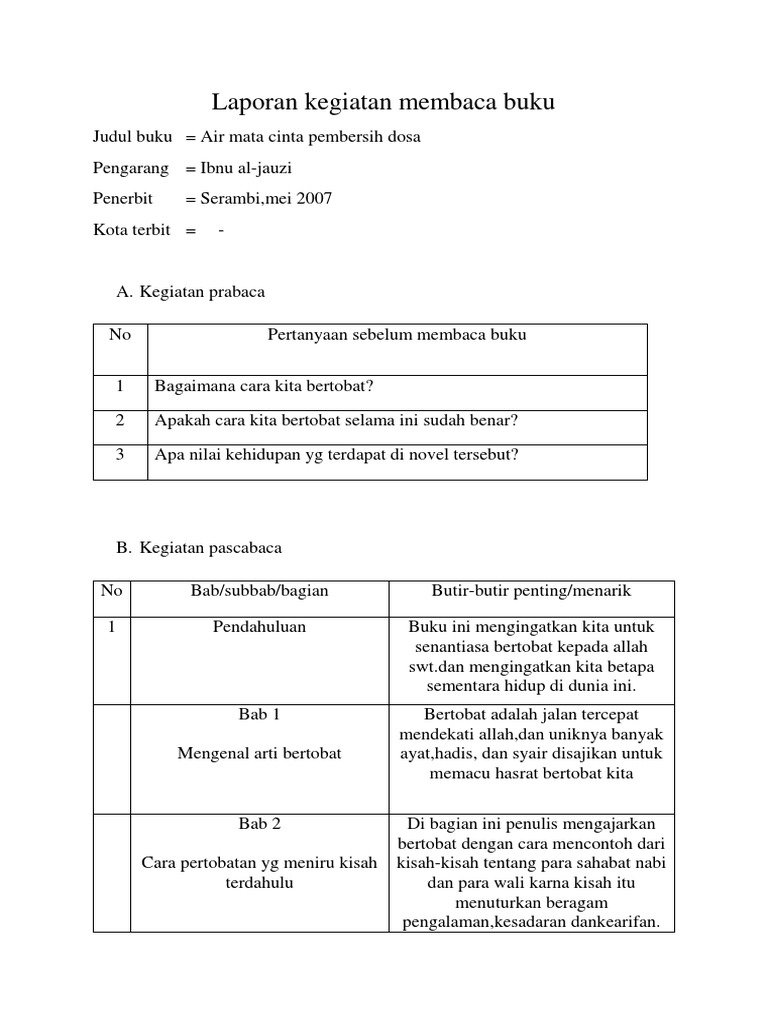 Contoh Laporan Harian Kegiatan Membaca Buku Non Fiksi Singkat - Kumpulan Contoh Laporan