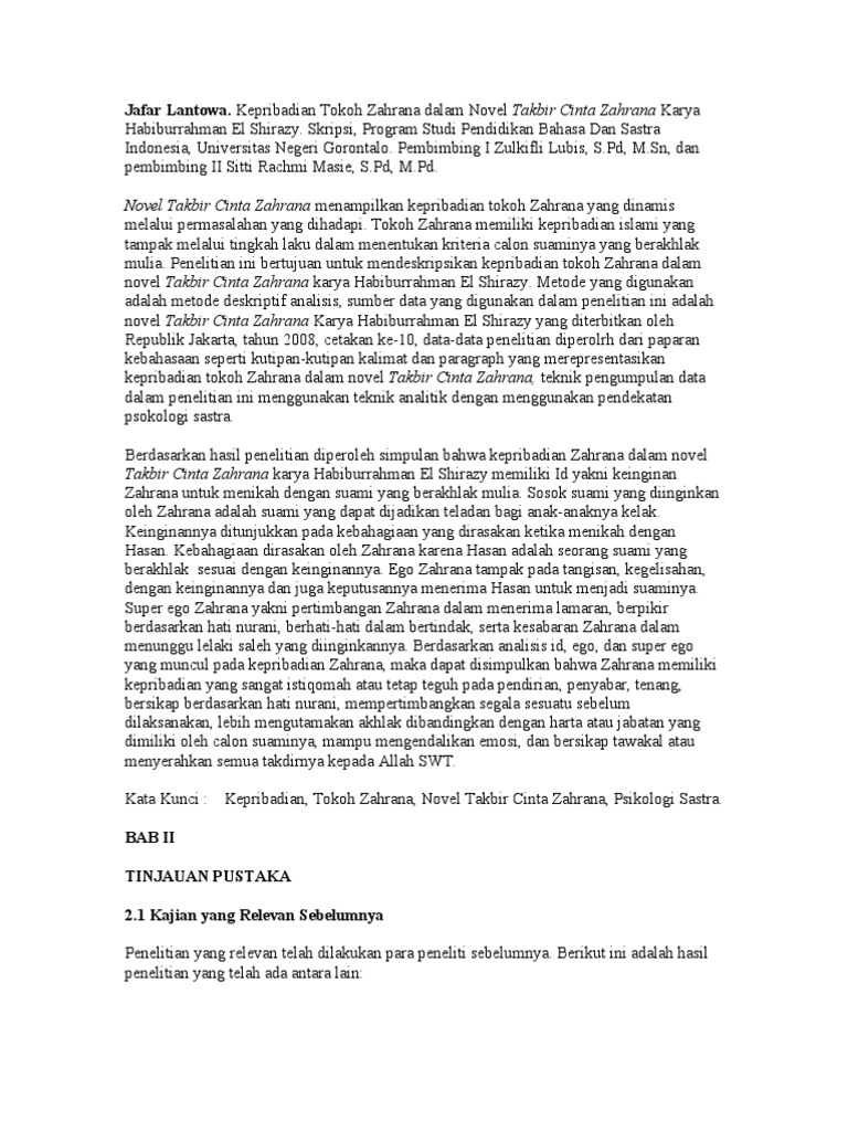 ANALISIS TOKOH ZAHRANA DALAM NOVEL TAKBIR CINTA ZAHRANA KARYA HABIBURRAHMAN EL SHIRAZY - PDF Free Download