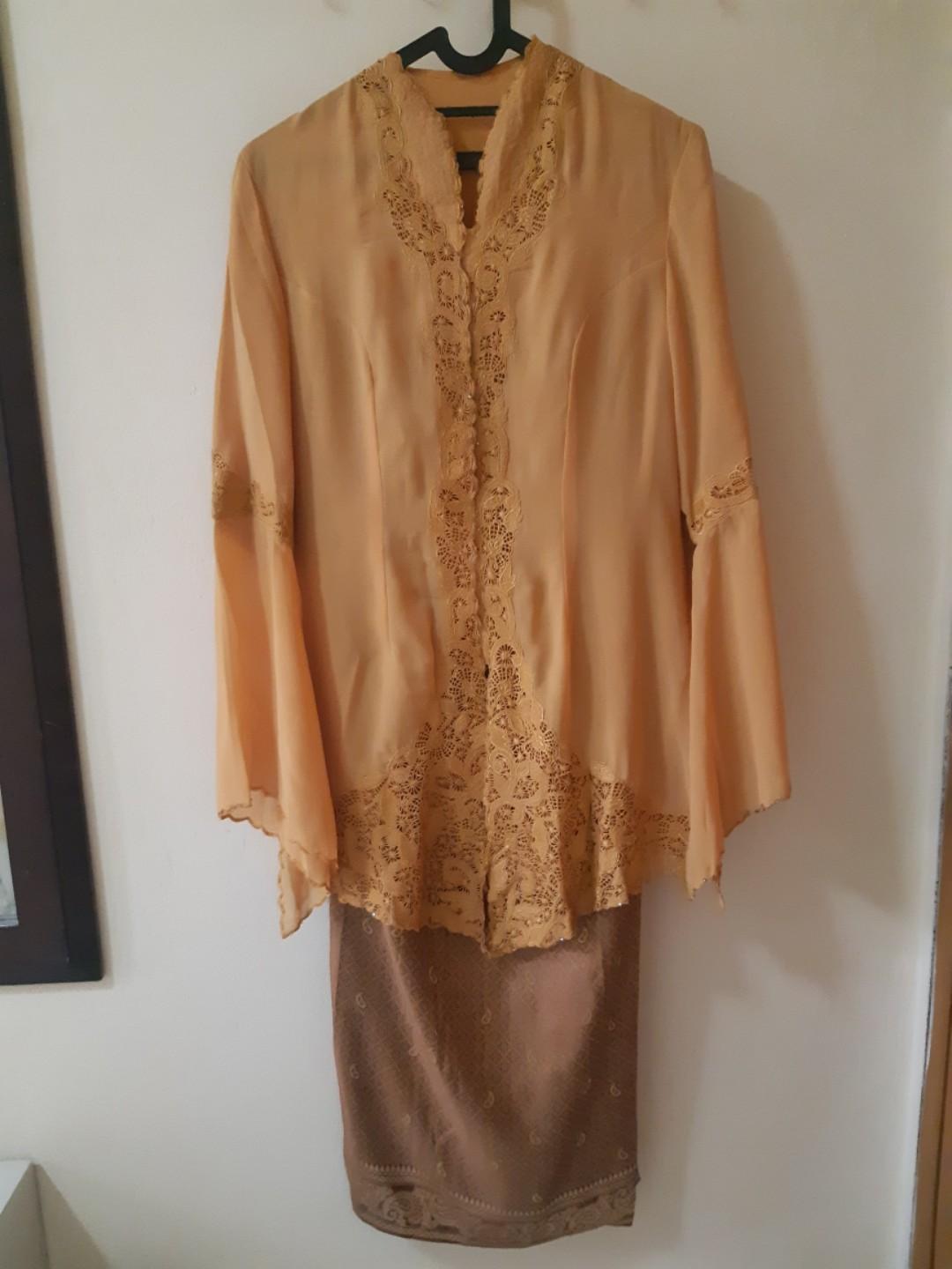1 Set Kebaya Bordir Kuning & Rok Kain Songket Coklat., Fesyen …