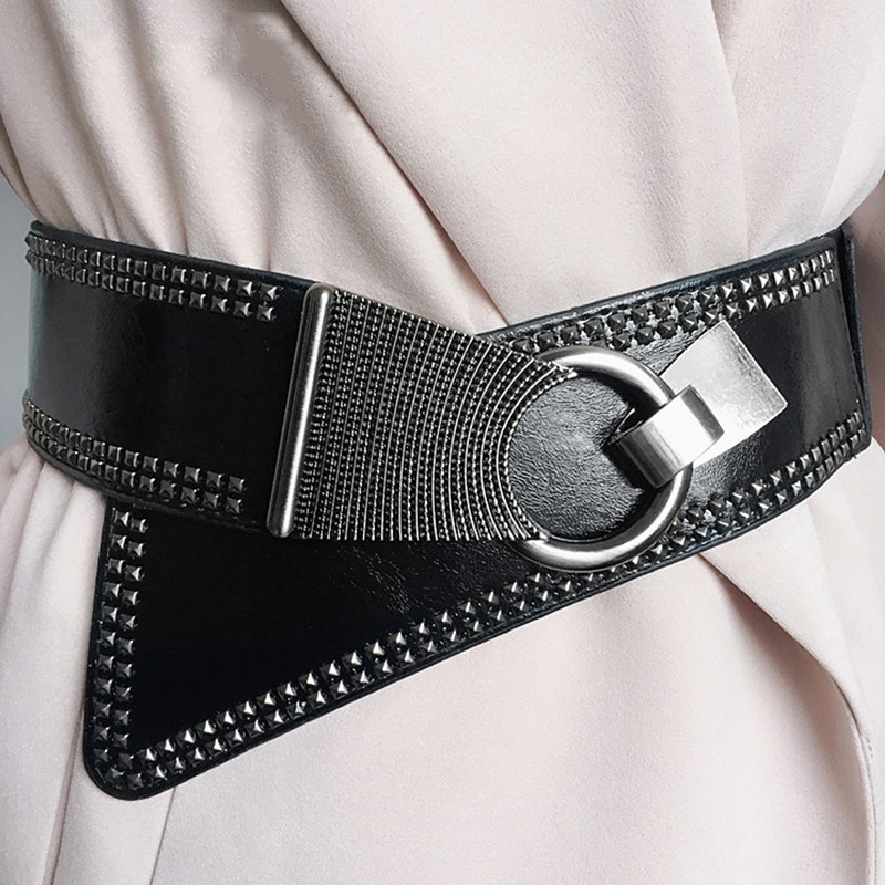Maikun Sabuk / Ikat Pinggang Kulit Stud Rivet Punk Lebar Sabuk Wanita Women Belt | Shopee Indonesia