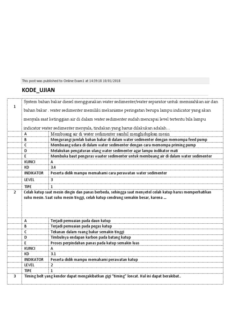 Tes pemeliharaan mesin | Education Quiz - Quizizz