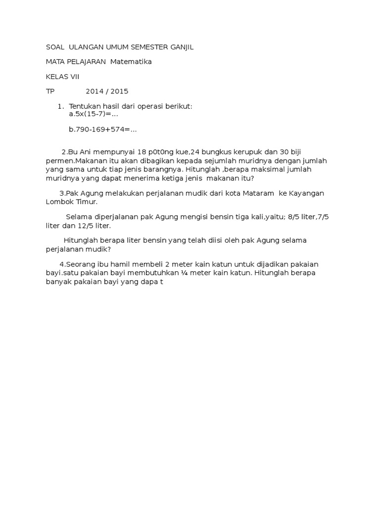Soal Ulangan Umum Semester Ganjil