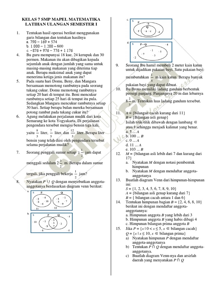 LATIHAN SOAL UAS SEMESTER 1 KELAS VII MATEMATIKA