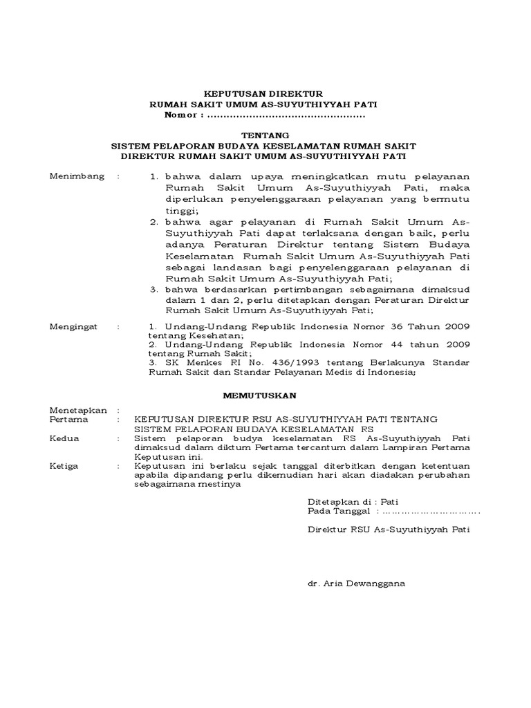 Sk Sistem Pelaporan Budaya Keselamatan Rumah Sakit