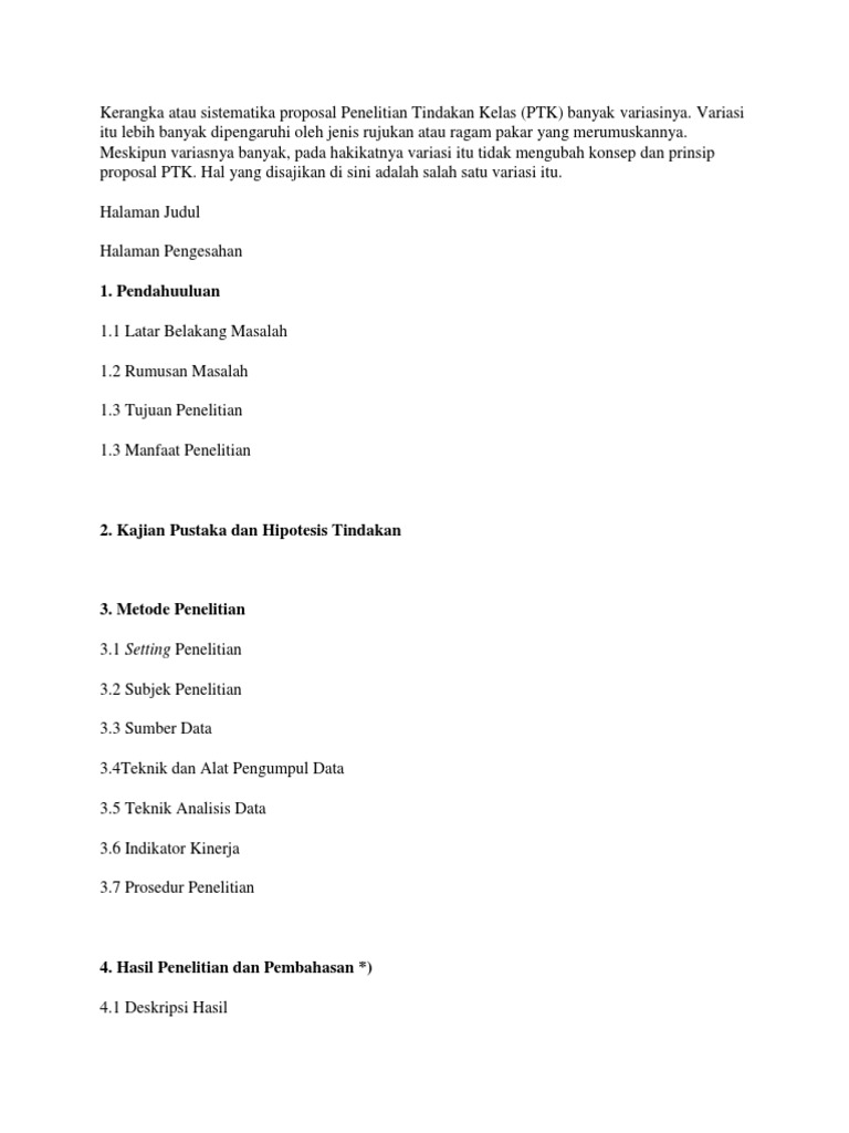 Contoh Format Susunan Proposal dan Sistematika Laporan PTK | Kerja …