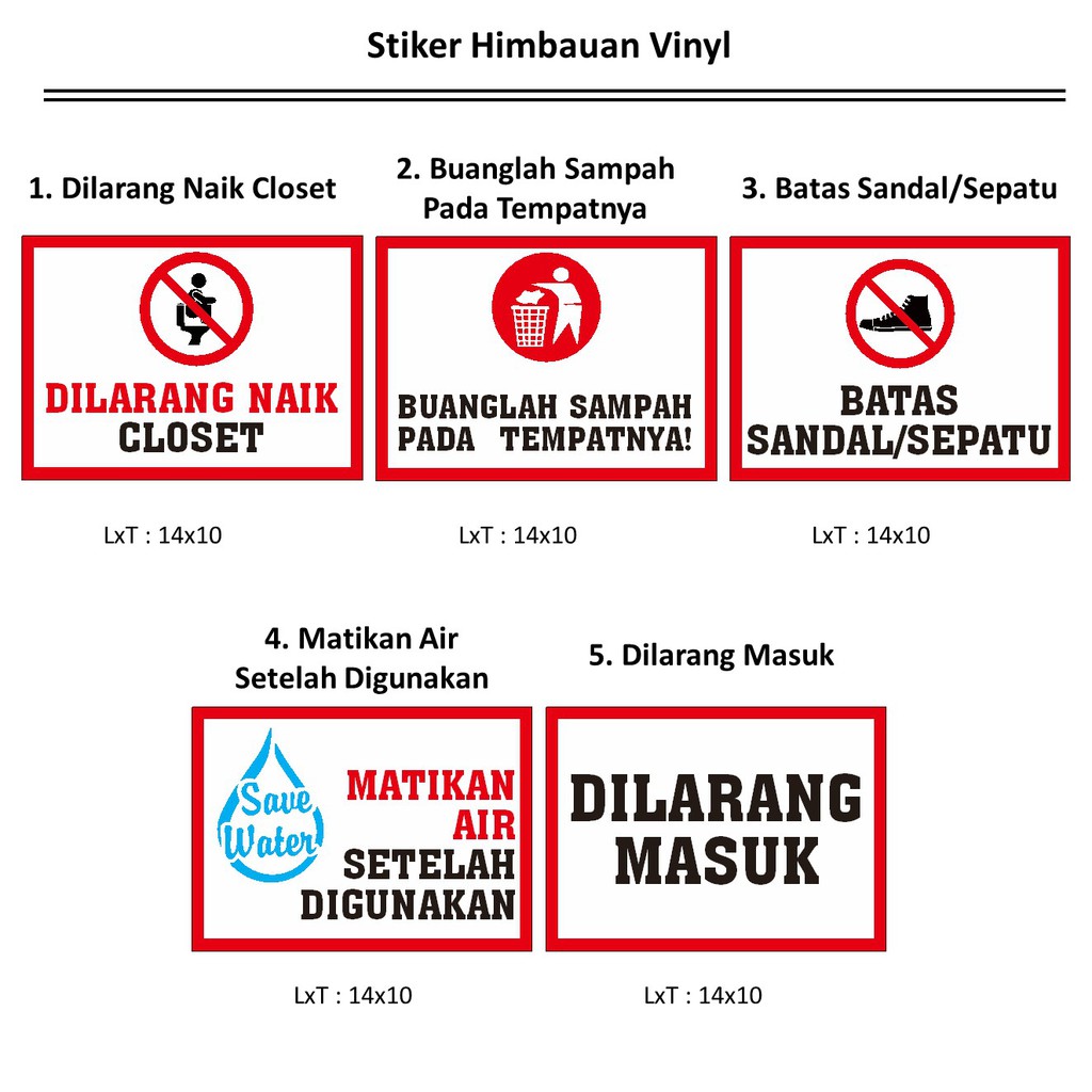 Stiker Vinyl Dilarang Masuk Naik Closet Buang Sampah Matikan Air Batas Sandal Sepatu Himbauan Office | Shopee Indonesia