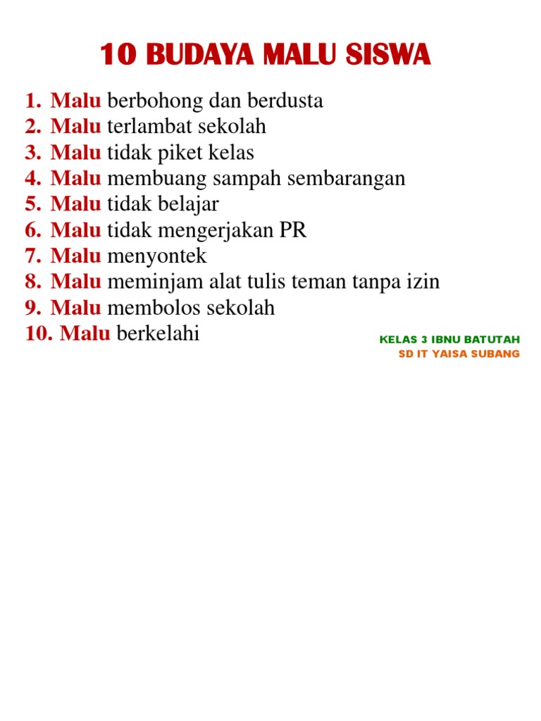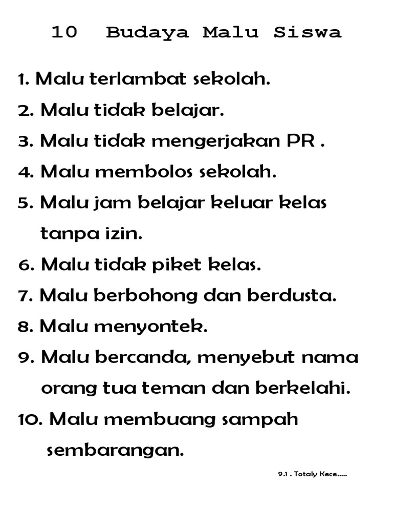 sebutkan 10 Budaya Malu, 10 Budaya tertib, 10 Budaya bersih? - Brainly.co.id