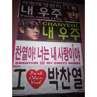 EXO CHANYEOL Korean Fansite Goods CHEERING SLOGAN towel banner and fan