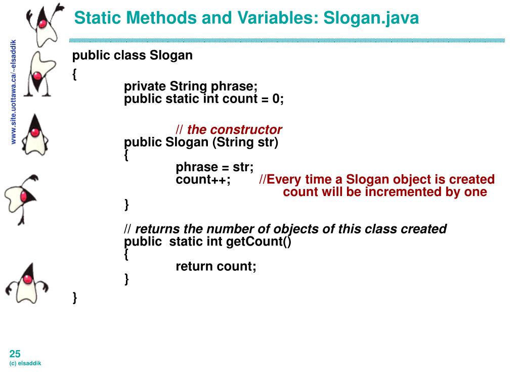 Slogan.java - Slogan.java Java Foundations Represents a single slogan or motto public class Slogan cfw private String phrase private static int count = | Course Hero