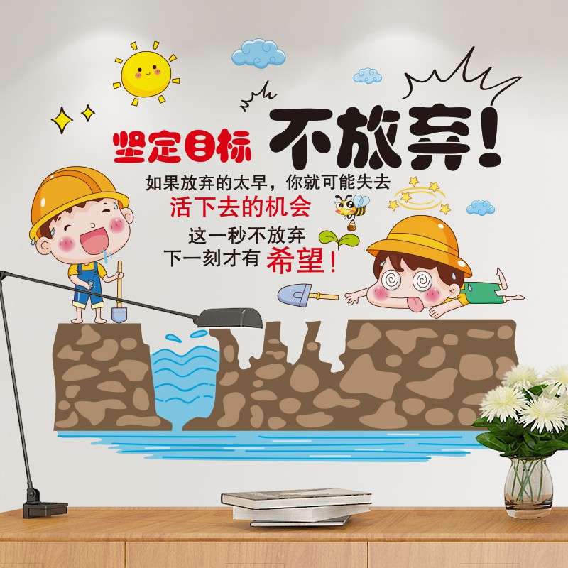 Tujuan perusahaan untuk tidak menyerah slogan budaya sekolah kartun stiker inspirasional, Asrama studi samping tempat tidur stiker dinding dekoratif | Shopee Indonesia