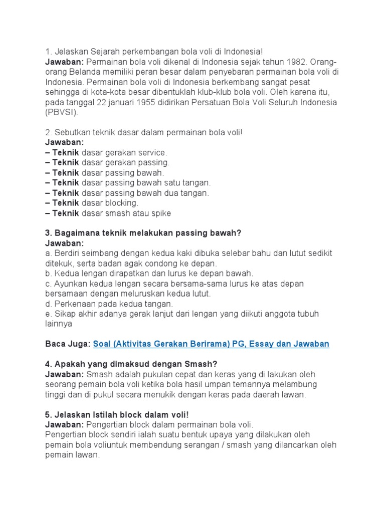 Soal jawaban essay tentang bola voli – Pengayaan.com