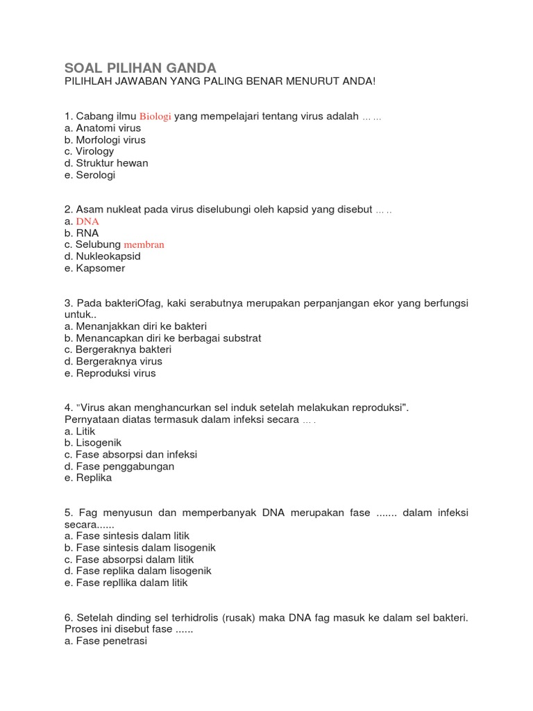 Soal dan pembahasan tentang virus pilihan ganda (Biologi …