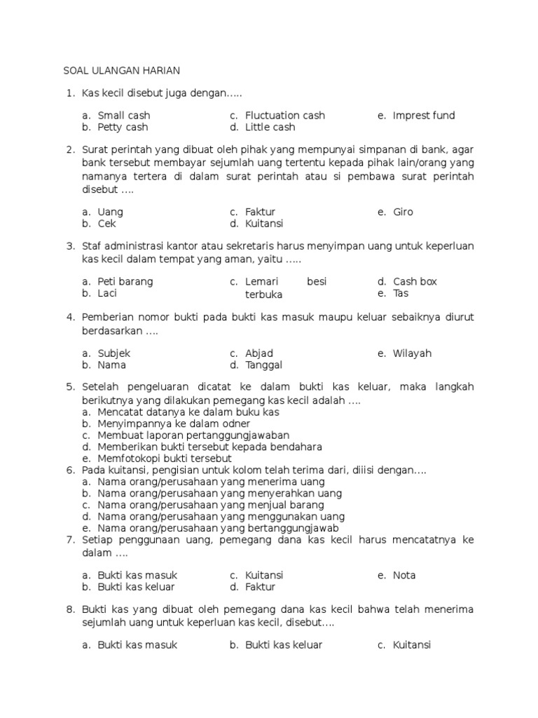 Contoh Soal Pilihan Ganda Dana Kas Kecil Dan Jawabannya - Dapatkan Contoh