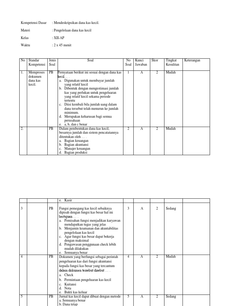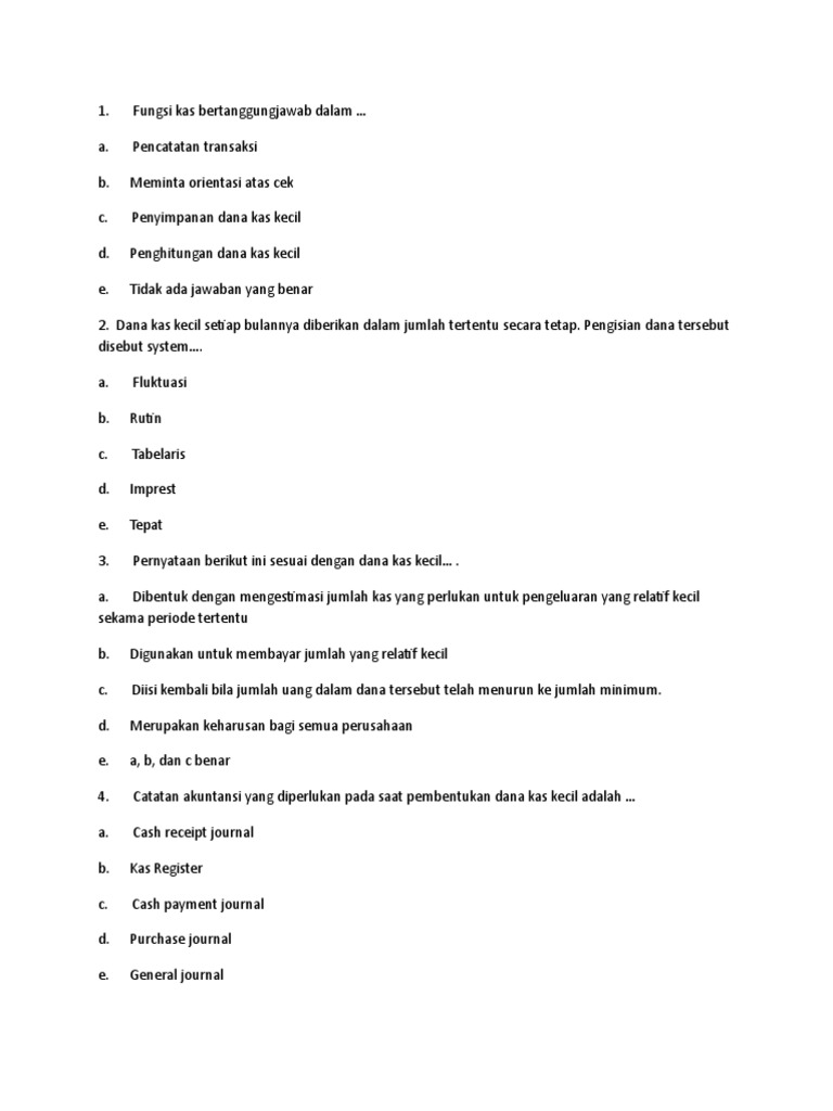 Soal dan jawaban essay dana kas kecil