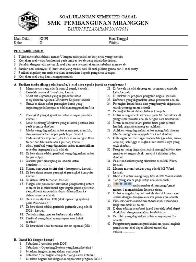 Soal Kkpi Kelas Xii Smk Semester Ganjil Beserta Jawabannya - Guru Ilmu Sosial