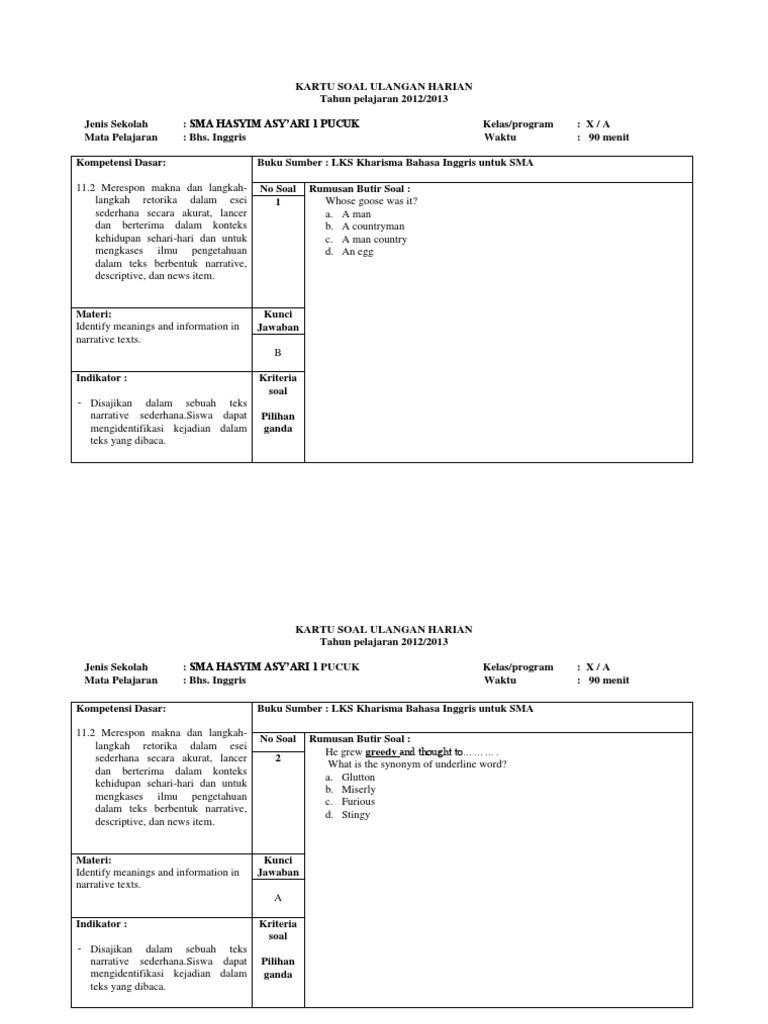 35 Contoh Latihan Soal Bahasa Inggris Pilihan Ganda dan Essay …