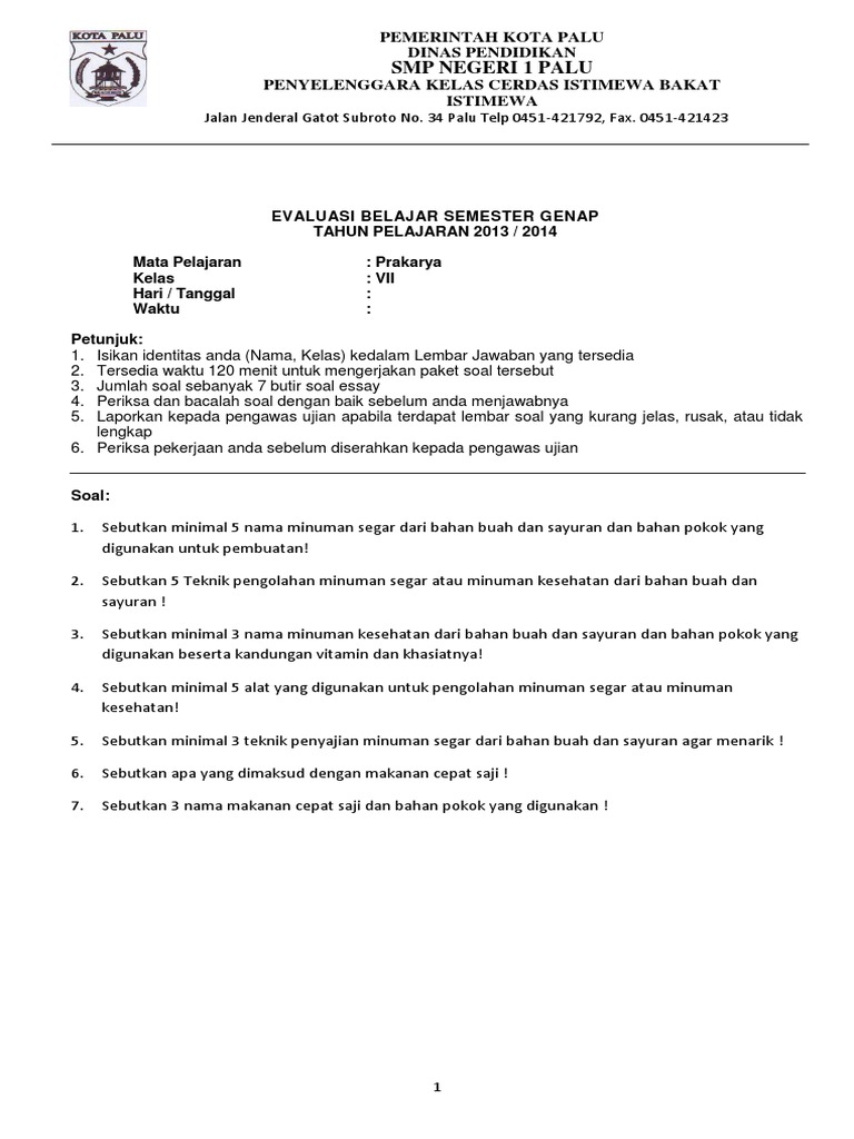 Contoh Soal Essay Prakarya Kelas 7 Semester 2 – Berbagai Contoh