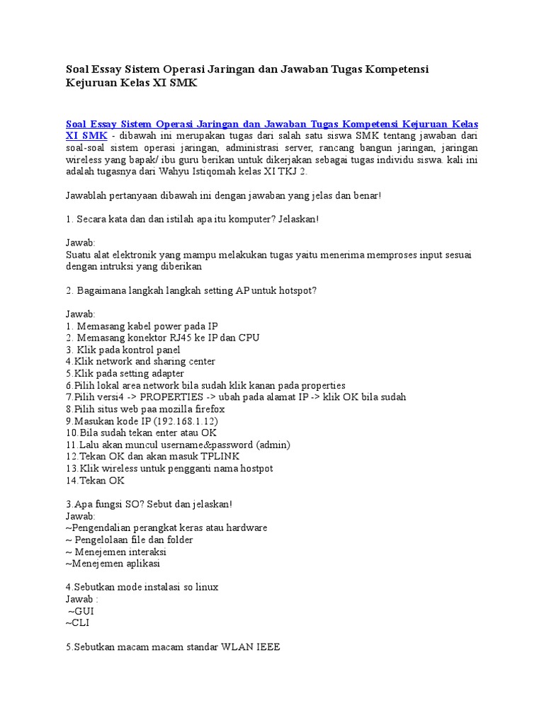 Soal Essay TKJ Kelas XII Beserta Jawaban - Manglada Tech