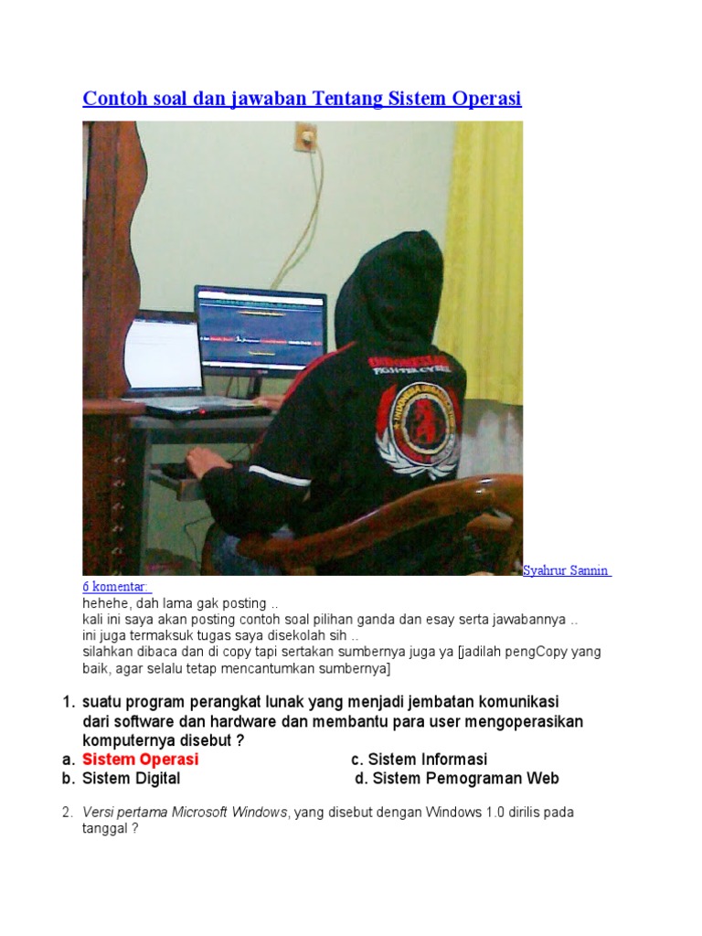Soal dan Jawaban Latihan Mata Pelajaran Sistem Operasi