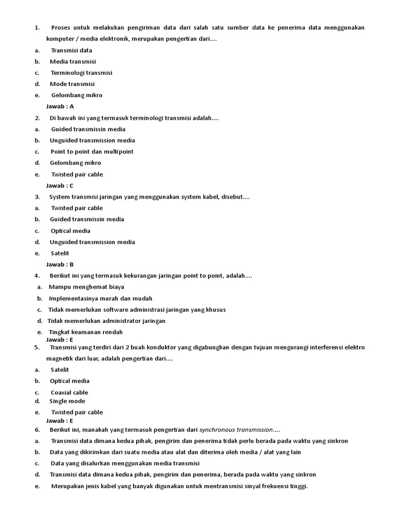 Soal Latihan Komunikasi Data Beserta Jawabannya