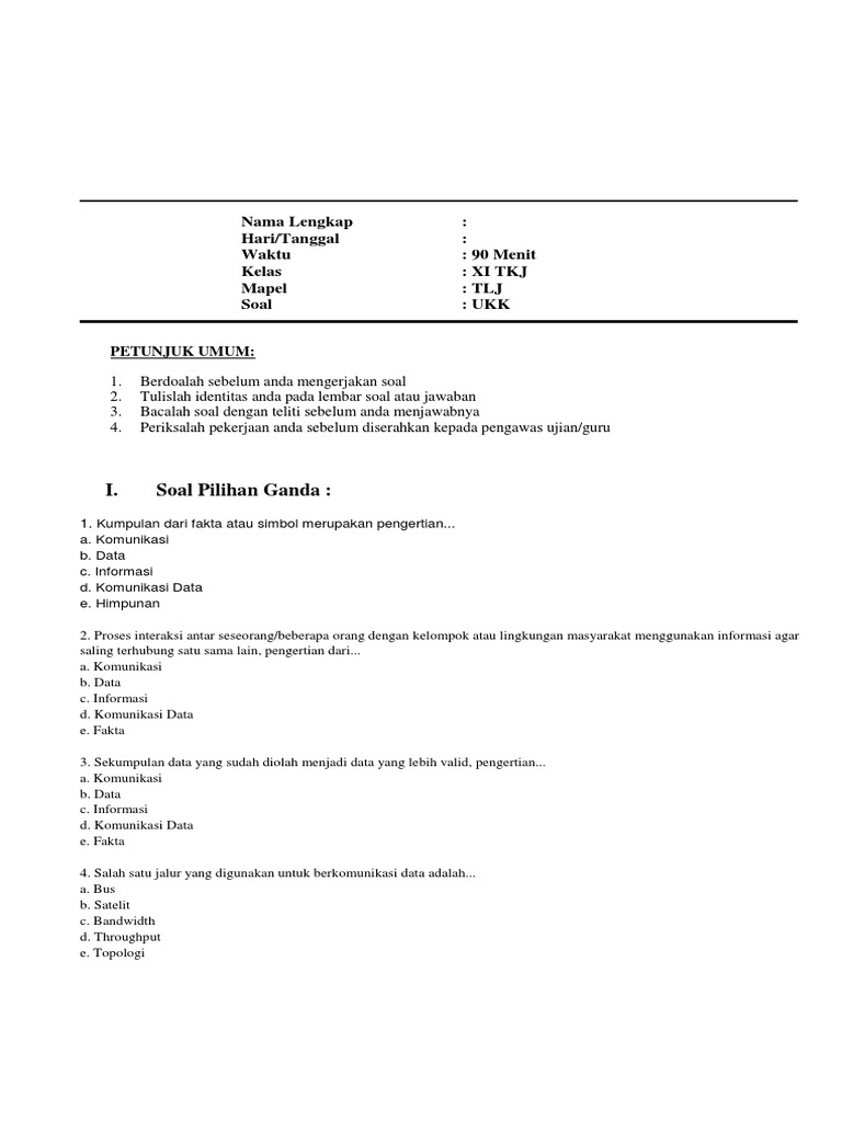 DOC) Soal Ujian Teknologi Layanan Komputer Semester 2 | Dam T H E An - Academia.edu