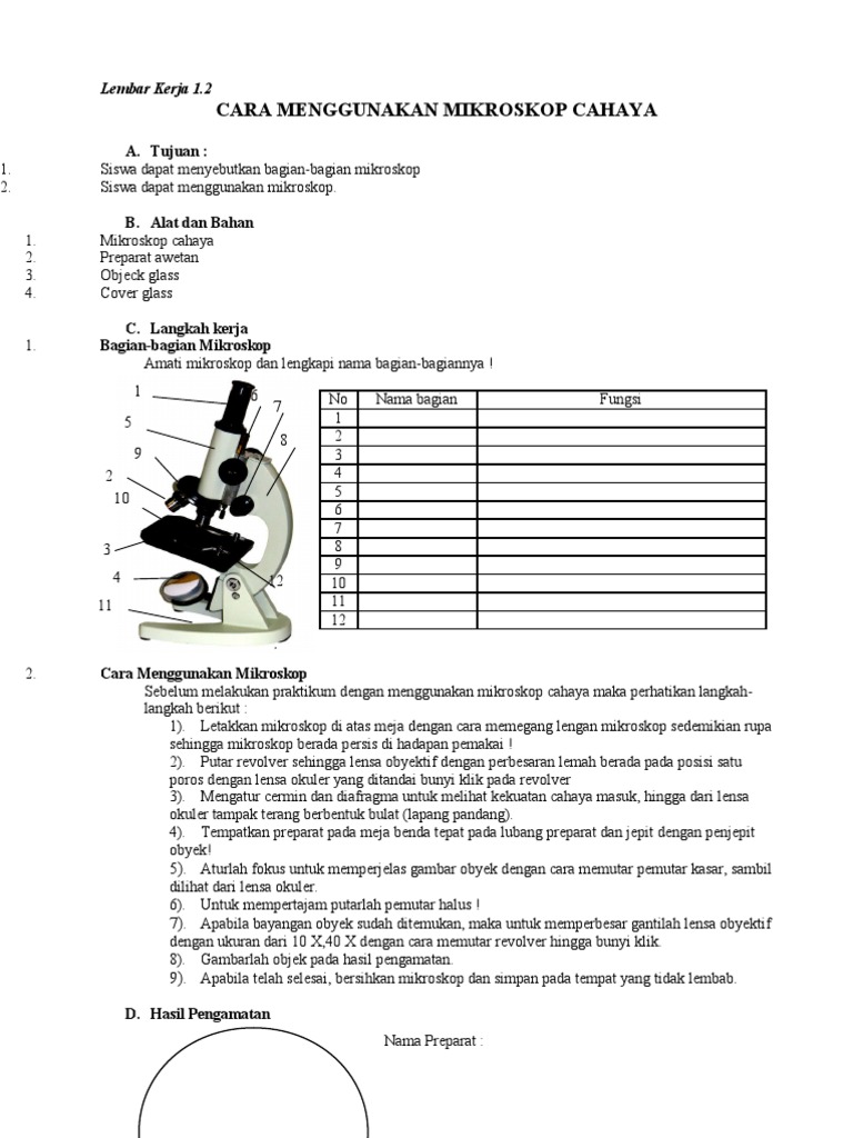 Soal Penggunaan Mikroskop, Kelas VII SMP - Info Pendidikan dan Biologi