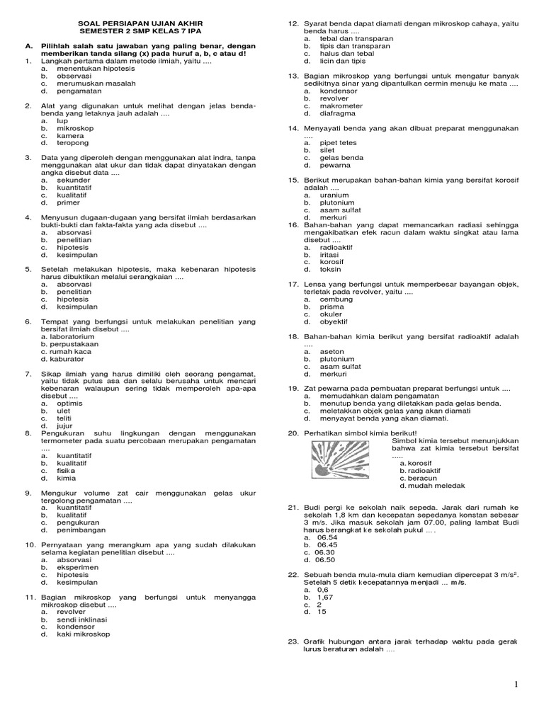 Kumpulan Latihan Soal IPA SMP Kelas VII Lengkap 1 Tahun